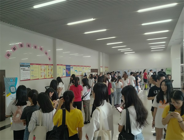 10月18日,华南理工大学广州学院图书馆牵手花都图书馆,为师生提供在家门口办理广图电子借书证的福利,受到广大师生的欢迎。早上8点半,闻讯赶来的同学们就聚集在办证点前排起了长队,其中不少大四的同学专程从实习地赶回学校办理。虽然大厅挤满了办证的读者,但在工作人员的热心指导下,办证秩序井然。