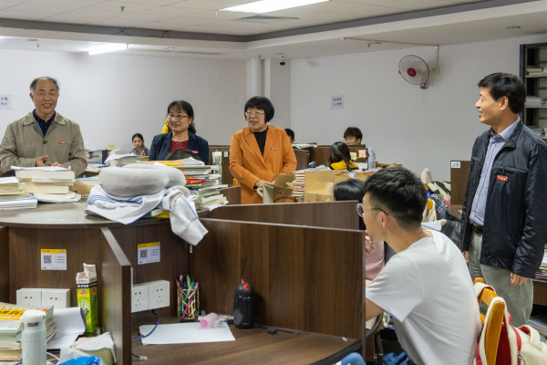 12月16日中午,华南理工大学广州学院党委书记张培祥、常务副校长曾志新和副校长林颖一行来到图书馆,在馆长杨华的陪同下,为备战2020考研的同学们送上慰问与祝福。