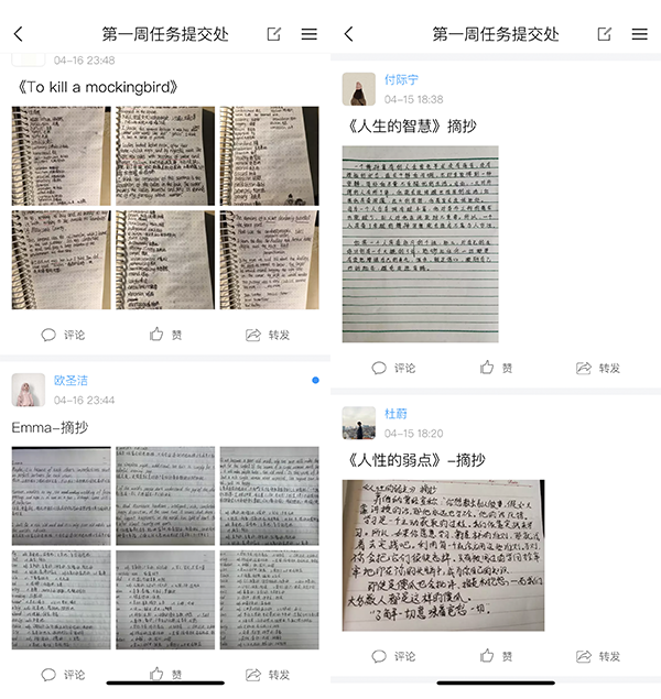 和以往线下的打卡阅读签到不同,本次打卡活动在学习通进行,由于不再受时间空间的限制,共有986人参与其中。加入小组,阅读书籍,发布心得,打卡阅读。各学院的老师们也根据不同的专业需求,分门别类地为同学们整理阅读电子读物。得益于线上平台优势,传统的书籍读本已不再是唯一的阅读途径,除了电子书,读者还可以在小组内观看音频视频,遇到不懂的地方也可以及时发帖讨论。相较于面对面的交流,“00后”读者更愿意留言互动,6个线上打卡小组累计发布6000余篇帖子,主要包括学习心得,个人疑惑等。海量的学习资源,高效的互动沟通,从线下到线上,是传统阅读活动到网络学习社群的变化。