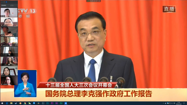 2020年5月22日9:00,校图书馆党支部组织全体员工收看“两会”现场直播,学习李克强总理《2020年政府工作报告》精神。大会开始,全体馆员庄严肃立唱响国歌,并对在抗击疫情的严峻斗争中因公殉职的医务人员、干部职工、社区工作者等和许多不幸罹难的患者默哀,对牺牲烈士和逝世同胞,表示深切悼念。