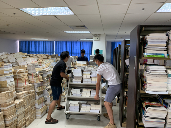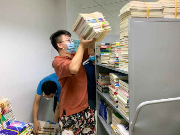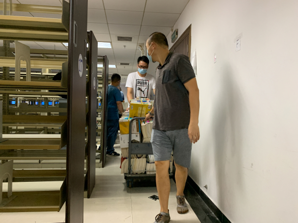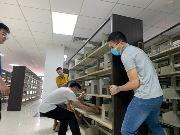 由于图书馆新书加工工程浩大,任务繁重。机械学院教工第二党支部书记陈宇珊得知这一情况后,主动向校党委请缨,从5月26日至今,先后带领27名党员群众到图书馆协助书库搬运整理工作。