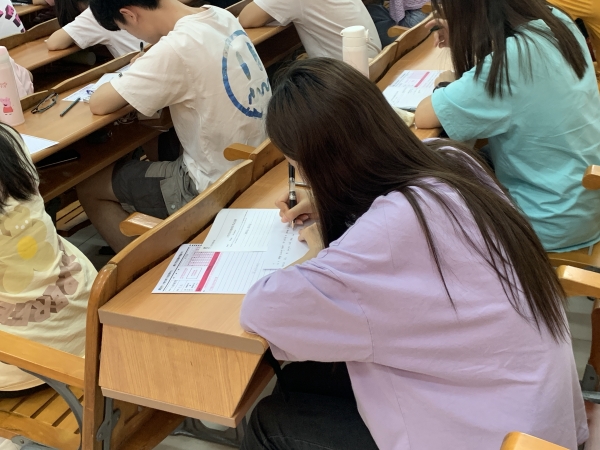 本次模拟考试近100人参与,考试时间140分钟,从作文、阅读到听力,严格按照全国大学生英语四级水平考试流程进行。
