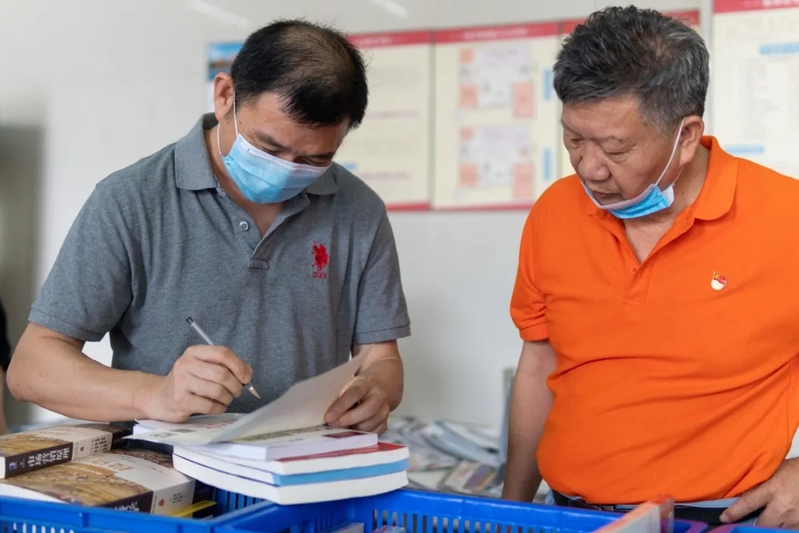 教师们认真挑选教材
